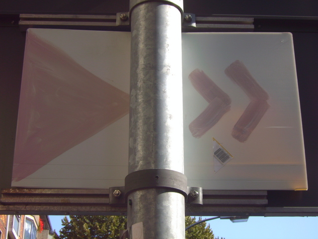 Plastikpappe Herkunft: abgelaufene Veranstaltungen und Wahlen → eingefügt →geklebt →genagelt →mit Kabelbindern befestigt